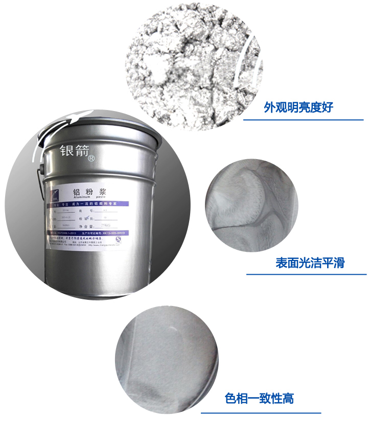 銀箭鋁顏料采用低速研磨,嚴(yán)格控制工藝,把機(jī)械能降到低,生產(chǎn)品質(zhì)優(yōu)良,應(yīng)用廣泛的鋁顏料。